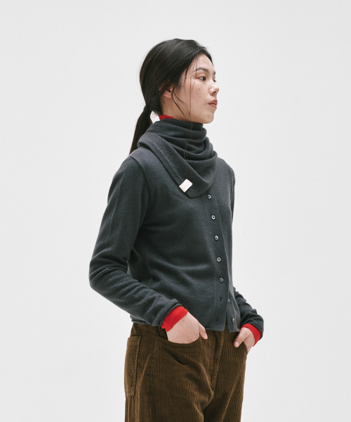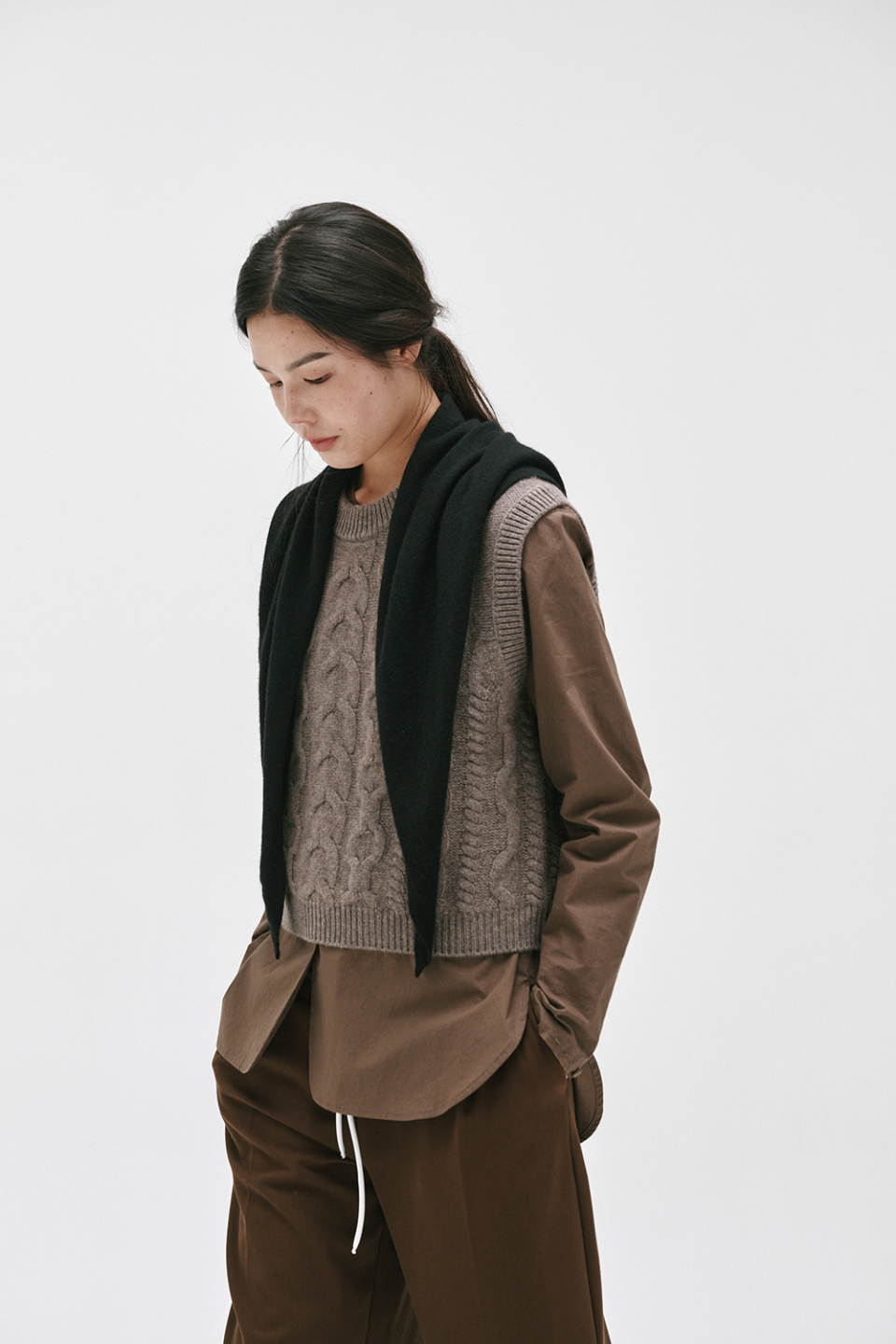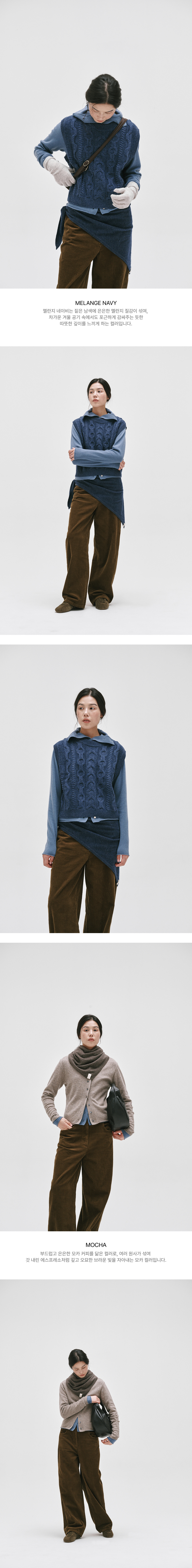 - 캐시미어 원사가 혼용되어 피부에 닿는 촉감이 부드럽고 가벼운 착용감