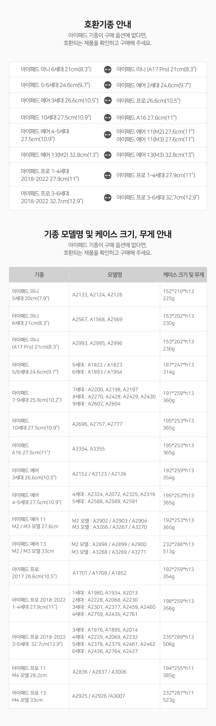 *에어 4/5세대 10.9인치 제품 -> 에어 6세대 11(M2) 모델과 호환 가능합니다.