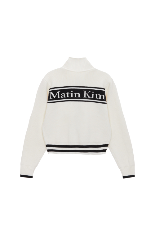 뒷면 라인 배색과 마뗑킴 로고가 포인트인 니트 가디건