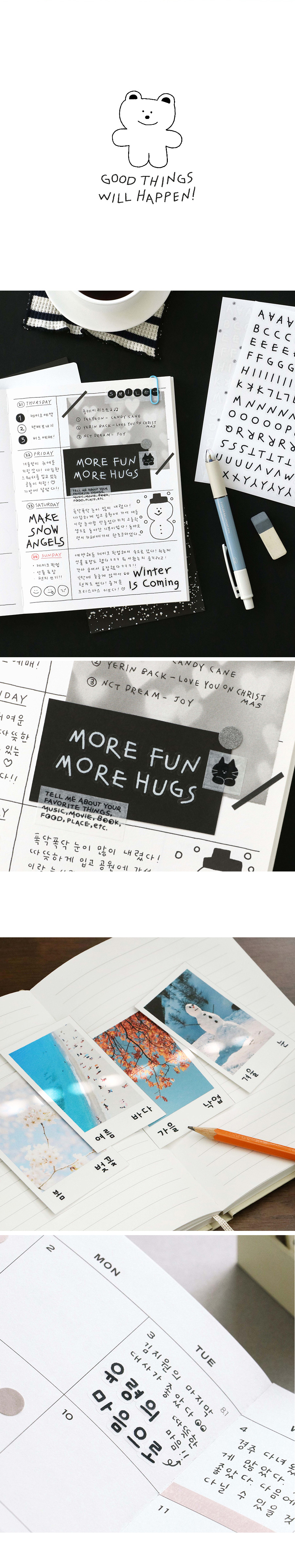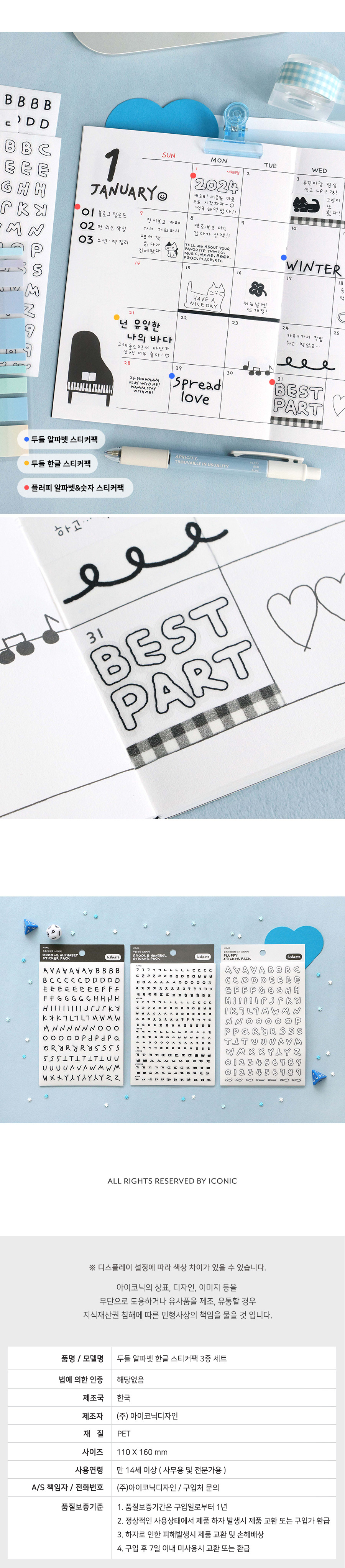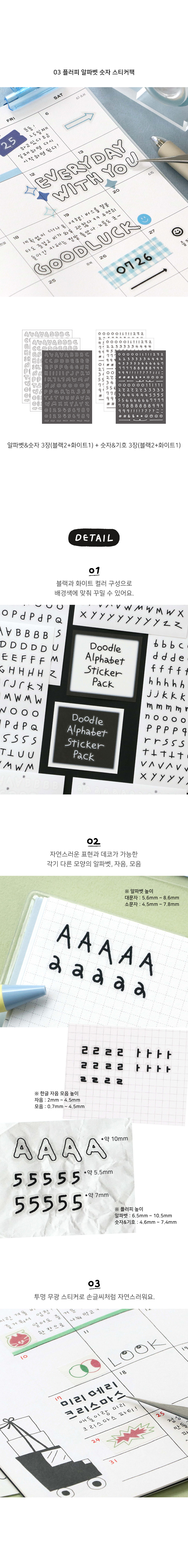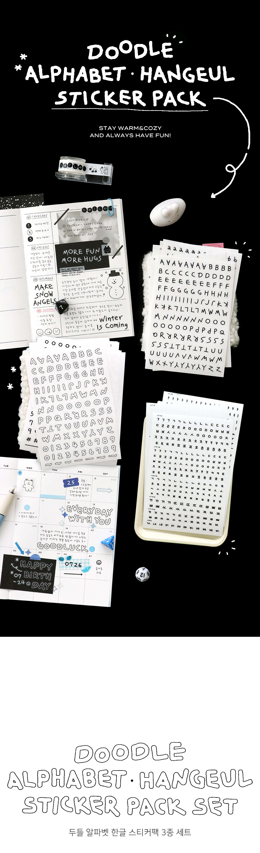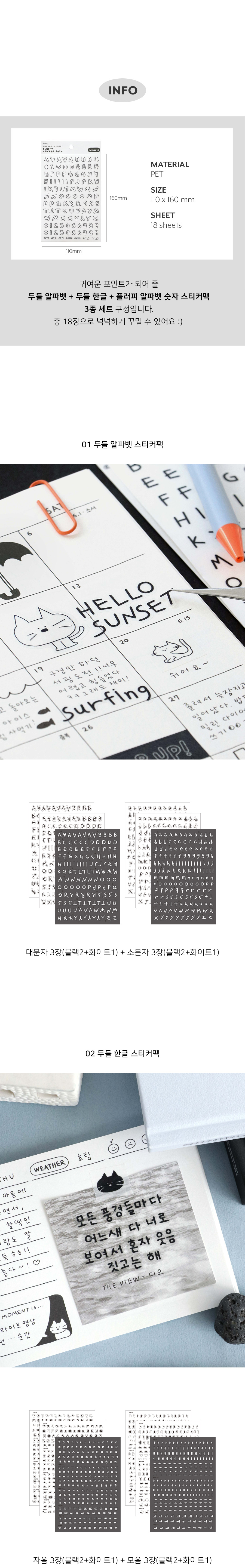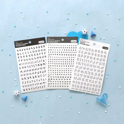 두들 알파벳 한글 스티커팩 3종 세트 다꾸 폴꾸