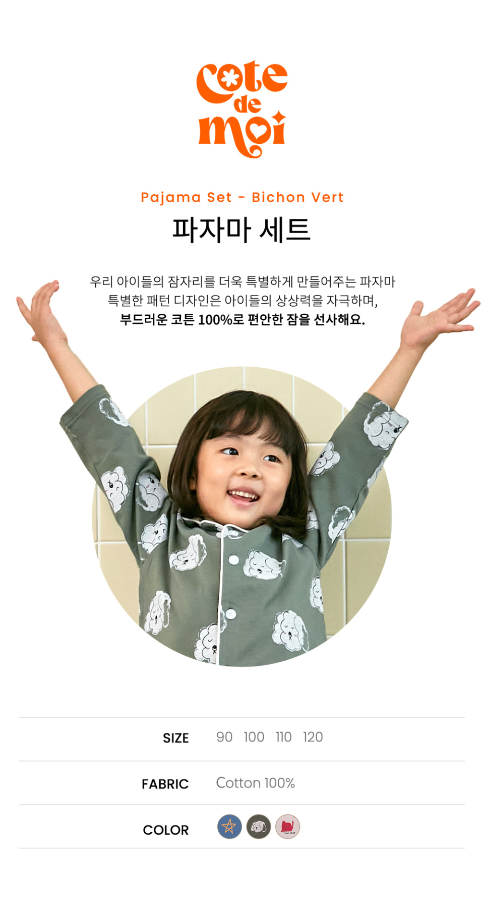 꼬떼드무어(COTE DE MOI)는 '내 옆에'라는 뜻을 담고 있습니다. 아이들과의 모든 순간을 함께하고자 하는 마음을 담아 디자인한 브랜드입니다.
