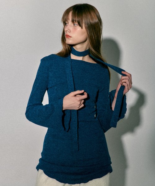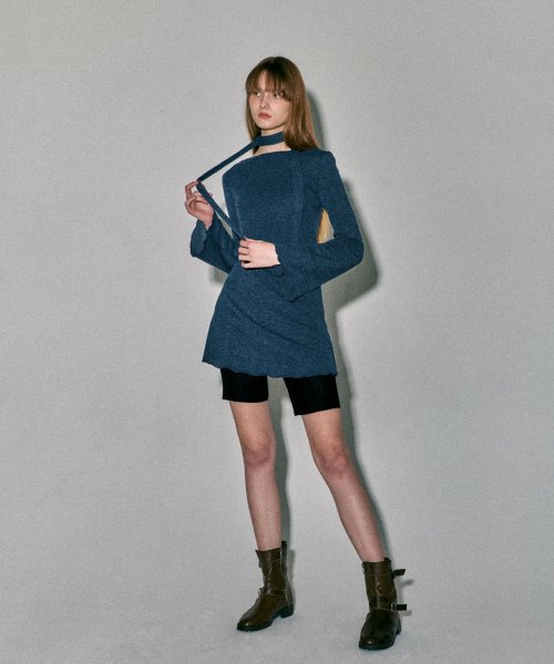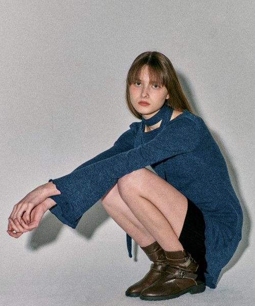 KNIT ONEPIECE & MUFFLER SET_DENIM BLUE