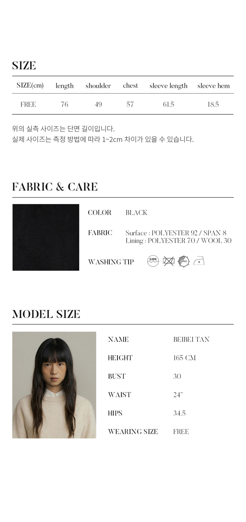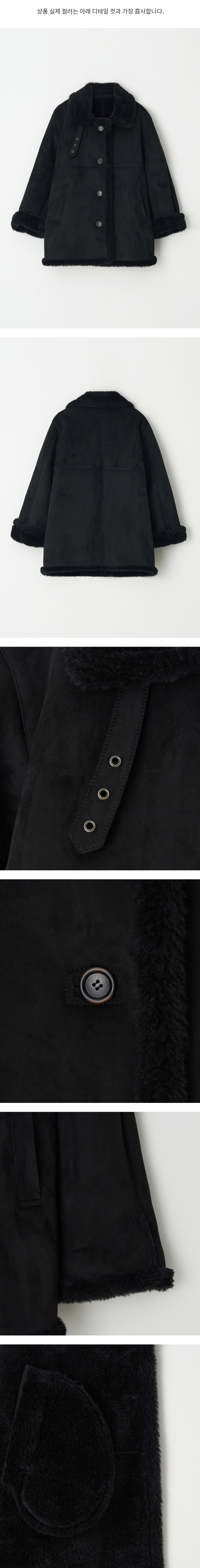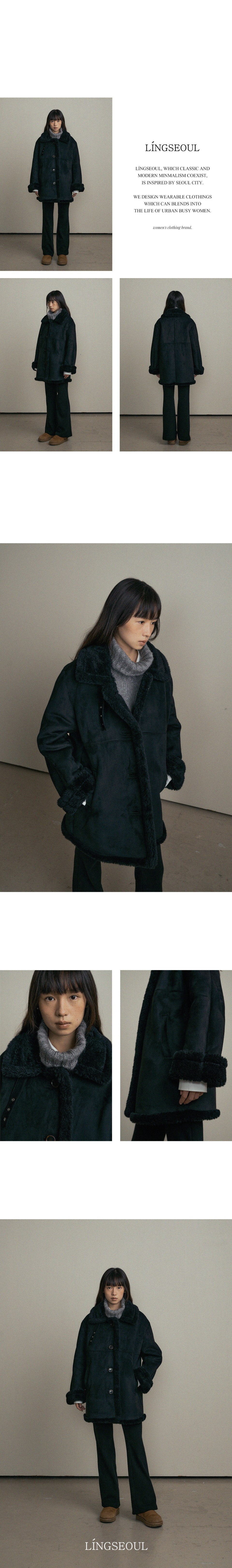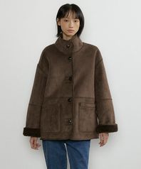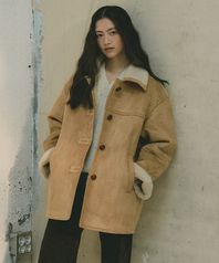 고급스러운 광택감과 가볍고 텐션감 있는 스웨이드 소재인 무스탕 하프 코트입니다. 울이 함유된 양모 소재 안감으로 보온성을 더했습니다. 드롭 숄더로 떨어져 어깨 부각이 없고 세미 오버핏의 힙까지 덮어 주는 실루엣입니다. 여유 있는 품과 넓은 소매통으로 다양한 이너와 부담 없이 레이어링 가능하며 넥 라인 버클 디테일을 활용하여 카라를 올려 하이넥으로 따듯함을 한층 더해 연출 가능합니다.