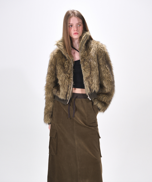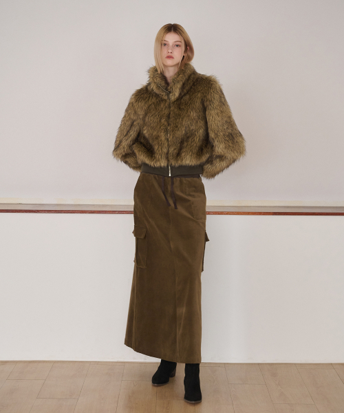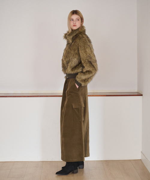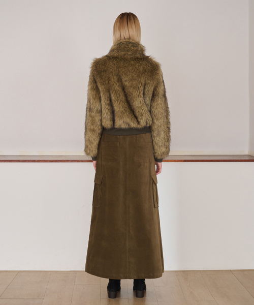 Flare Cargo Long Skirt, Khaki Brown