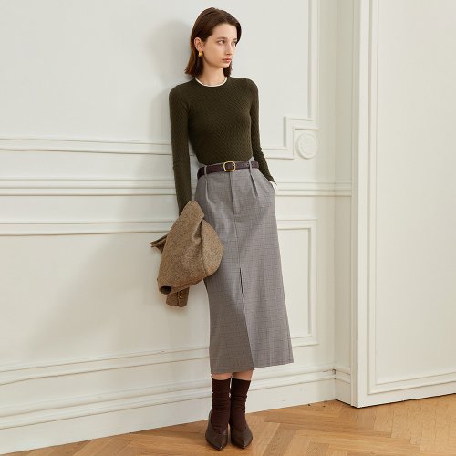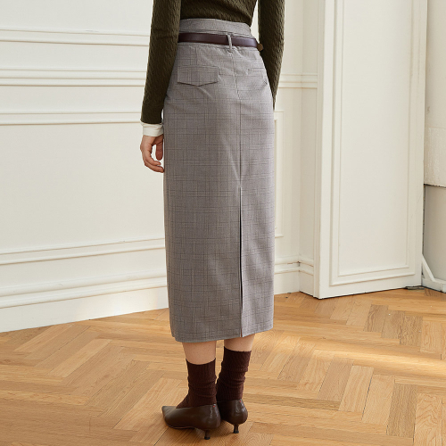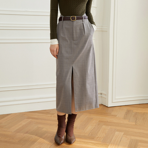 YY_Classic plaid front slit skirt