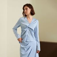 YY_Blue elegant pleated v-neck shirt