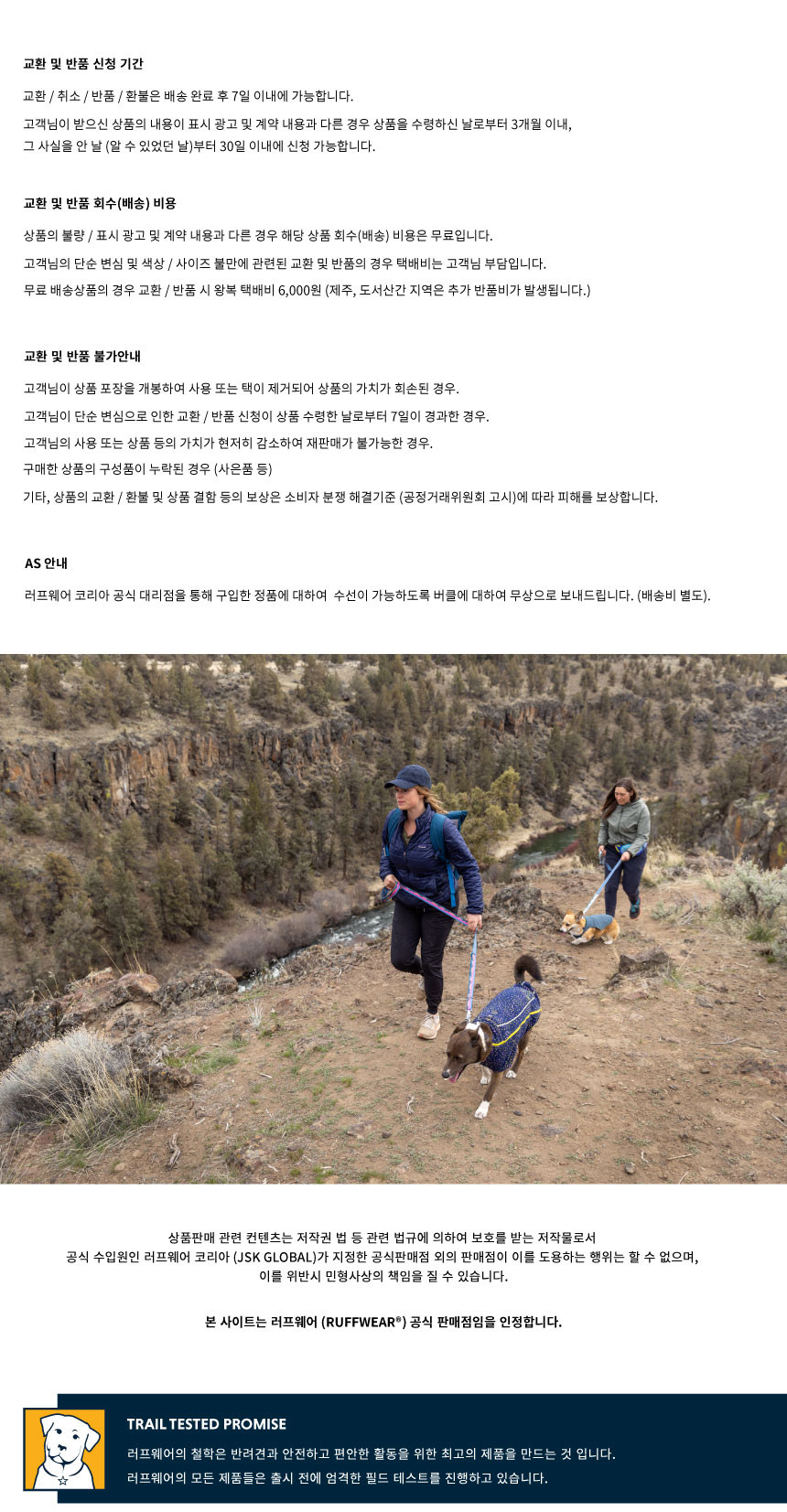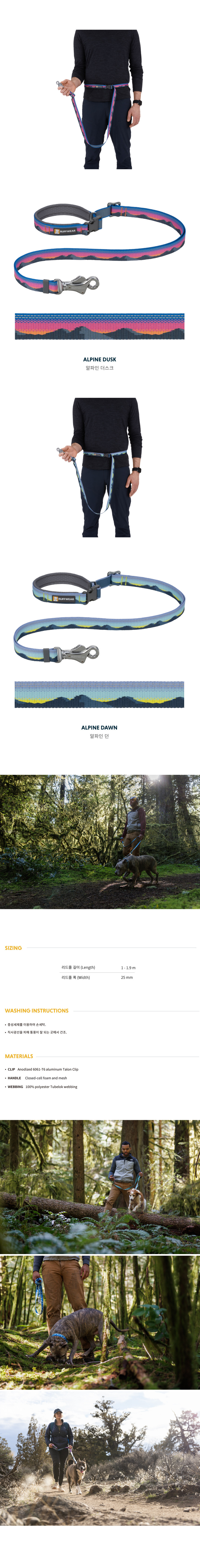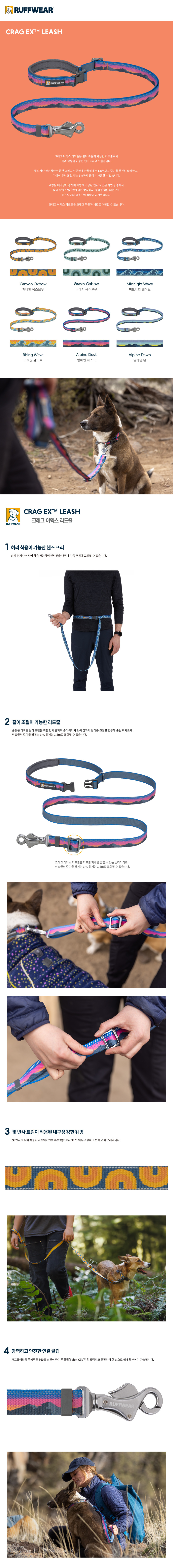 러프웨어(RUFFWEAR)는 그 이름만으로도 애견용품을 대표하는 최고급 브랜드로 미국 오리건주 밴드에 위치했습니다. 러프웨어의 철학은 개와 사람이 동료애를 느끼며 아웃도어 활동을 안전하고 편안하게 할 수 있는 최고급 아웃도어 애견용품을 만드는 것이며, 이를 위해 제품의 디자인, 소재를 그 목적에 맞게 설계/제작하고 있으며 지속적인 제품 개발을 통해 최고의 애견용품 업체로의 위상을 굳건해 하고 있습니다.