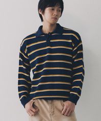 멀티 배색 카라 스트라이프 니트 티셔츠 [네이비]