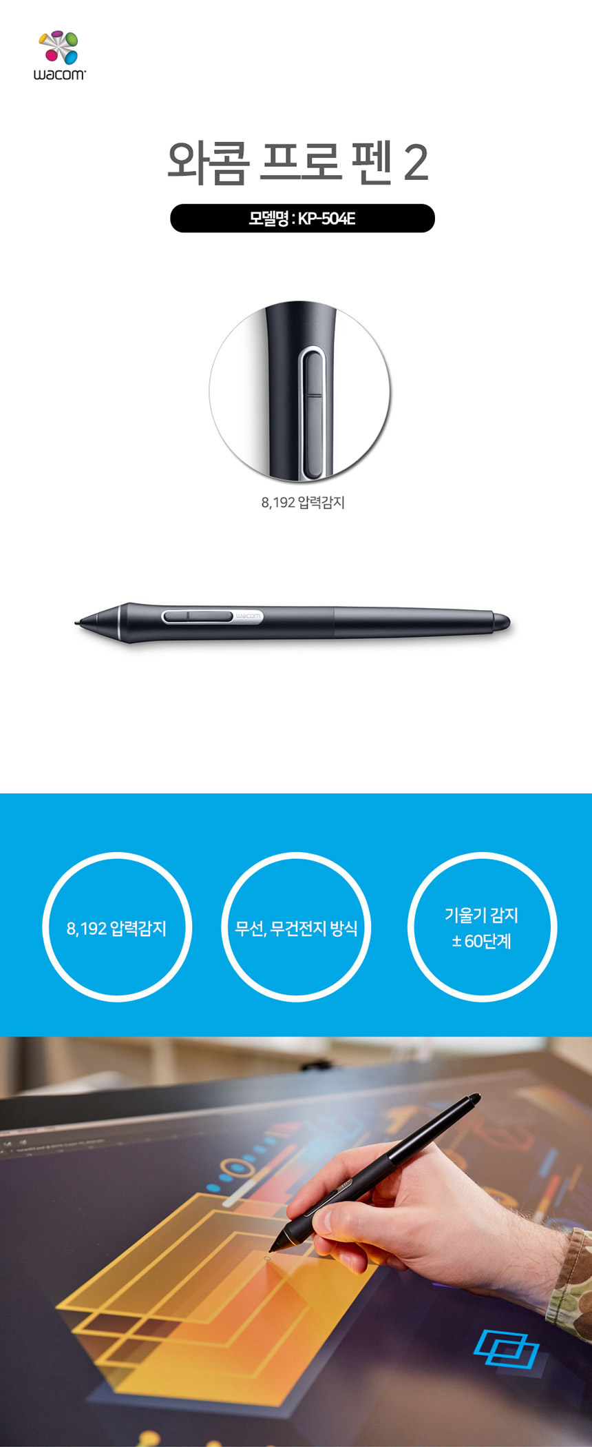 와콤(WACOM)은 액정 타블렛을 전 세계 최초로 선보인 기업입니다. '자연적인 인터페이스 기술을 통해 사람과 기술을 더 가깝게 한다.'라는 비전으로 전 세계를 선도하는 펜 타블렛, 디스플레이, 디지털 스타일러스, 전자 서명 솔루션 등을 제공하고 있습니다.