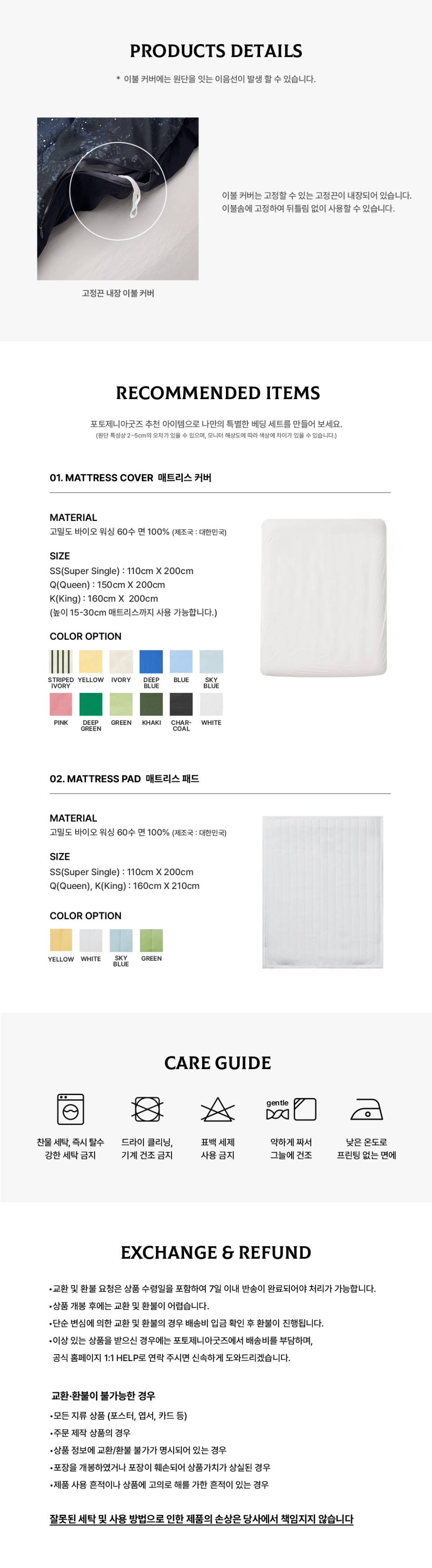 스트라이프 고밀도 60수 면 이불 커버 - 아이보리 (SS/Q/K)