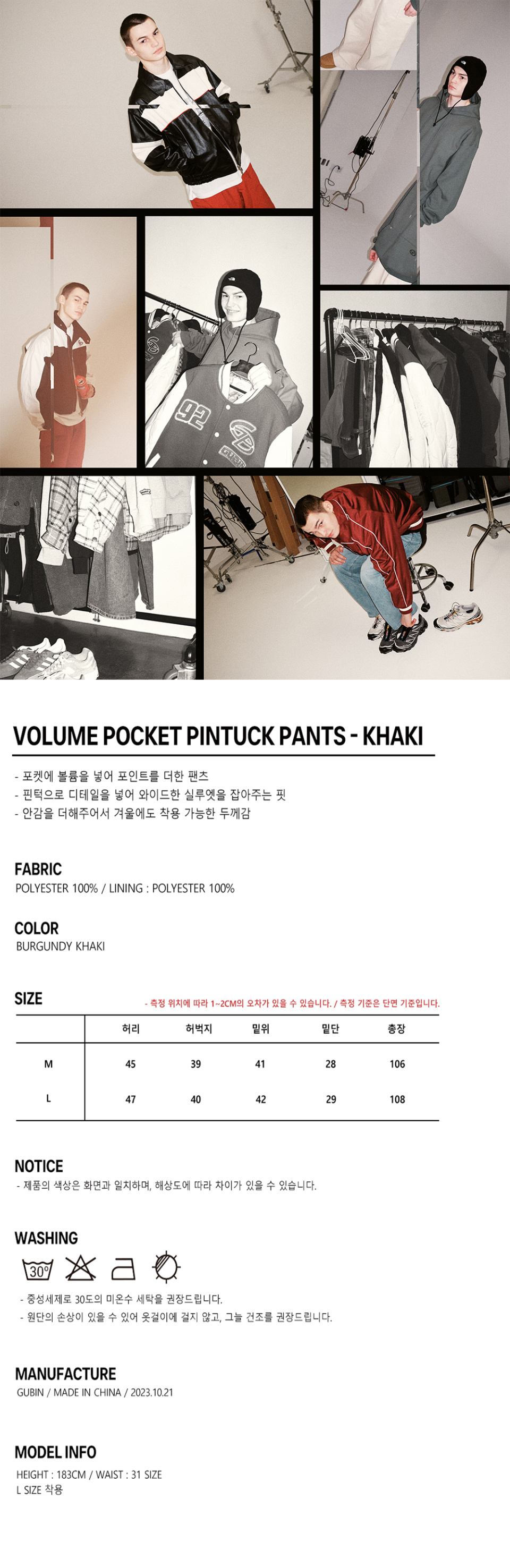 [SEASON OFF] 볼륨 포켓 핀턱 팬츠 - 카키
