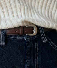 심플 슬림 레더 벨트 - 브라운
