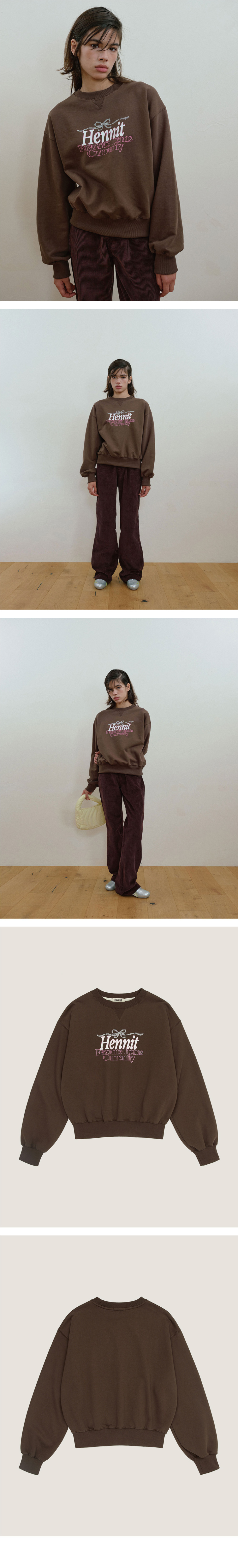 리본 그래픽 스웨트셔츠(브라운)