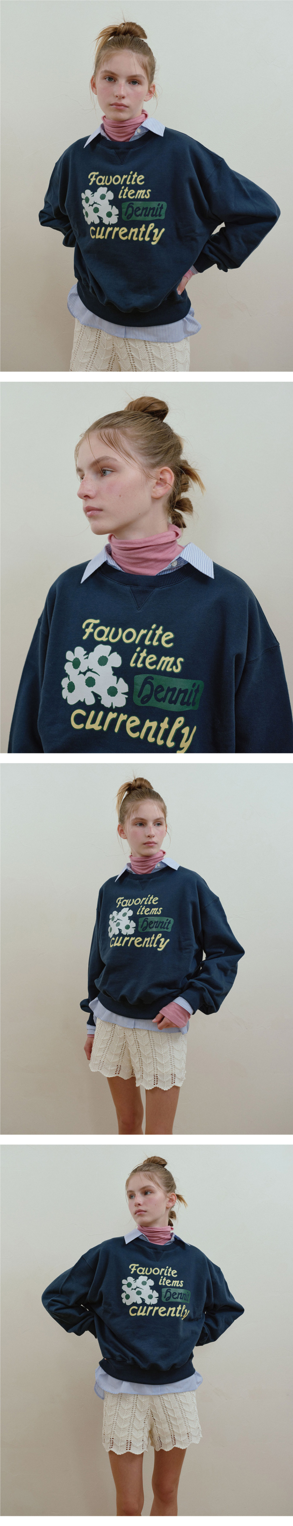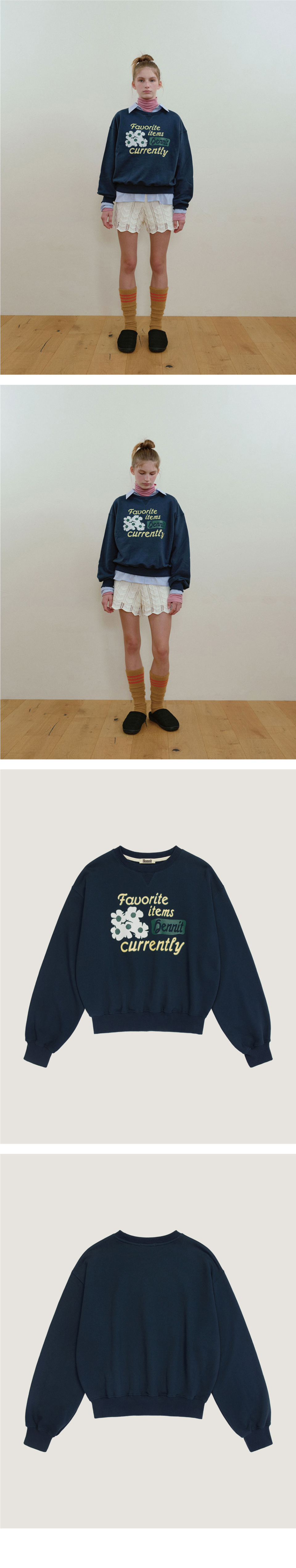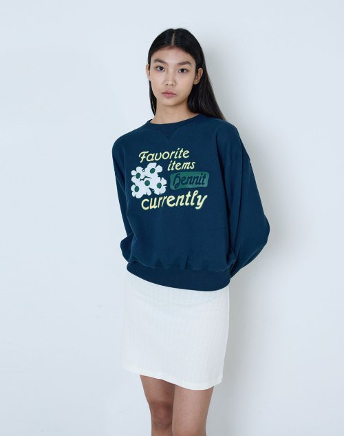 플라워 그래픽 스웨트셔츠(네이비)