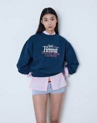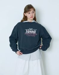 리본 그래픽 스웨트셔츠(네이비)