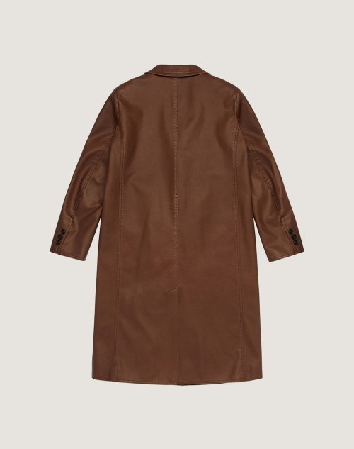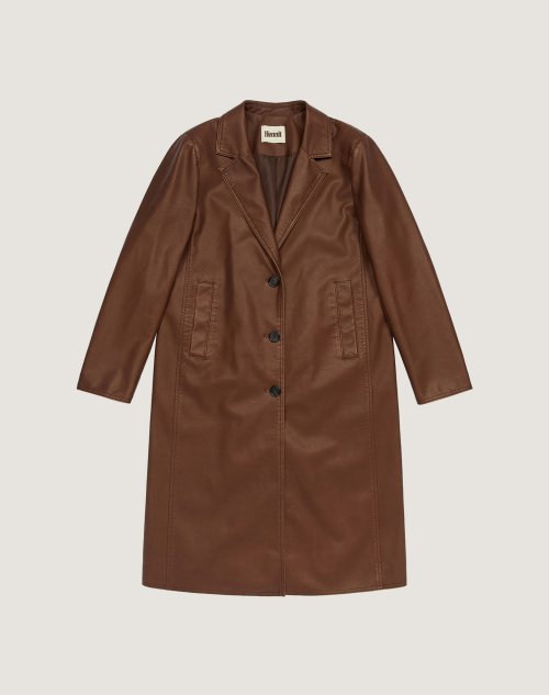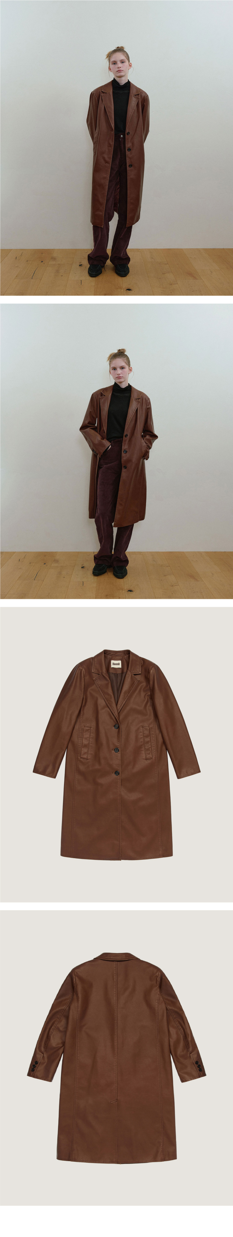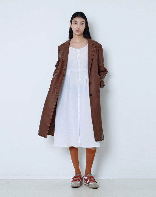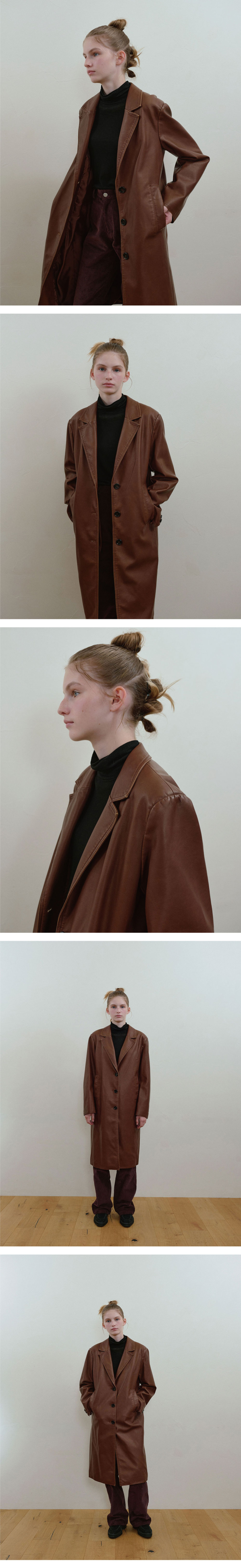빈티지 비건 레더 롱 코트(브라운)