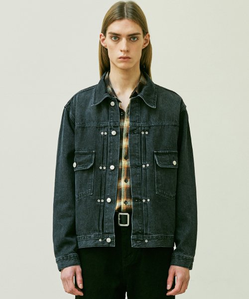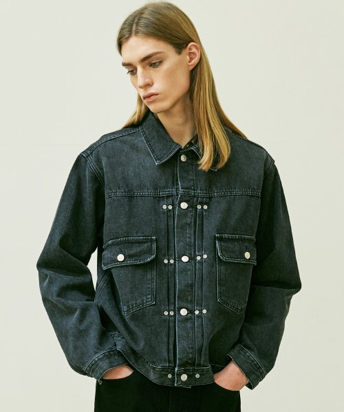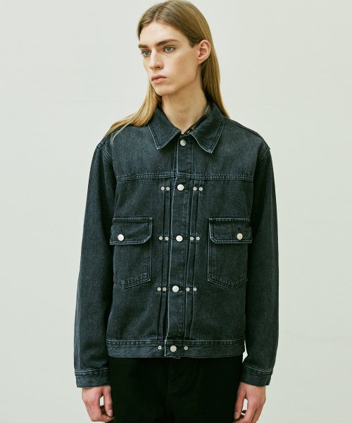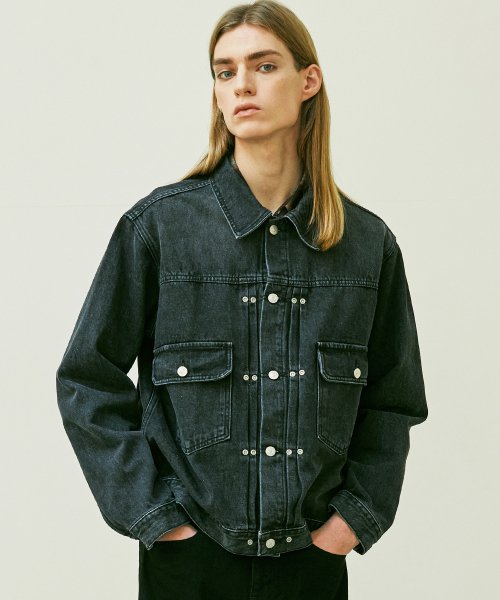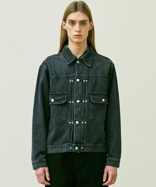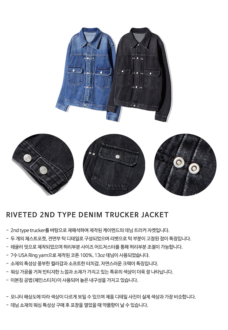리벳 2ND TYPE 워시드 데님 트러커 자켓 블랙