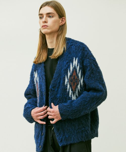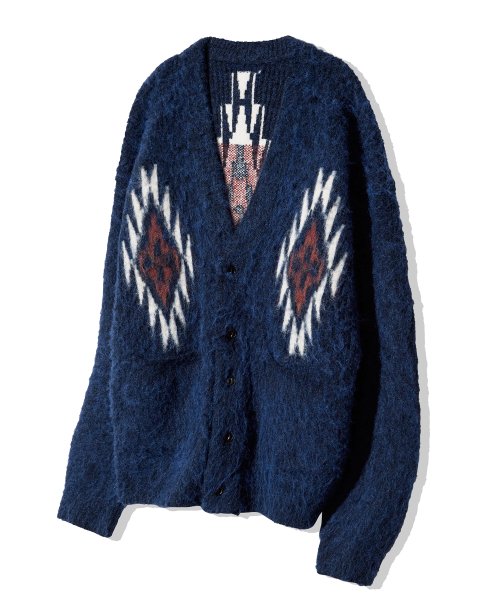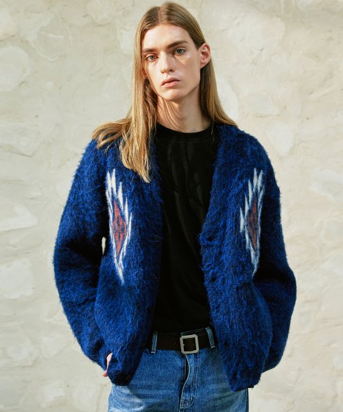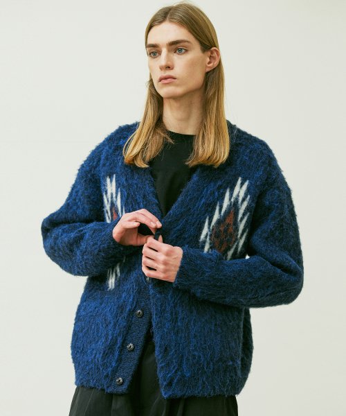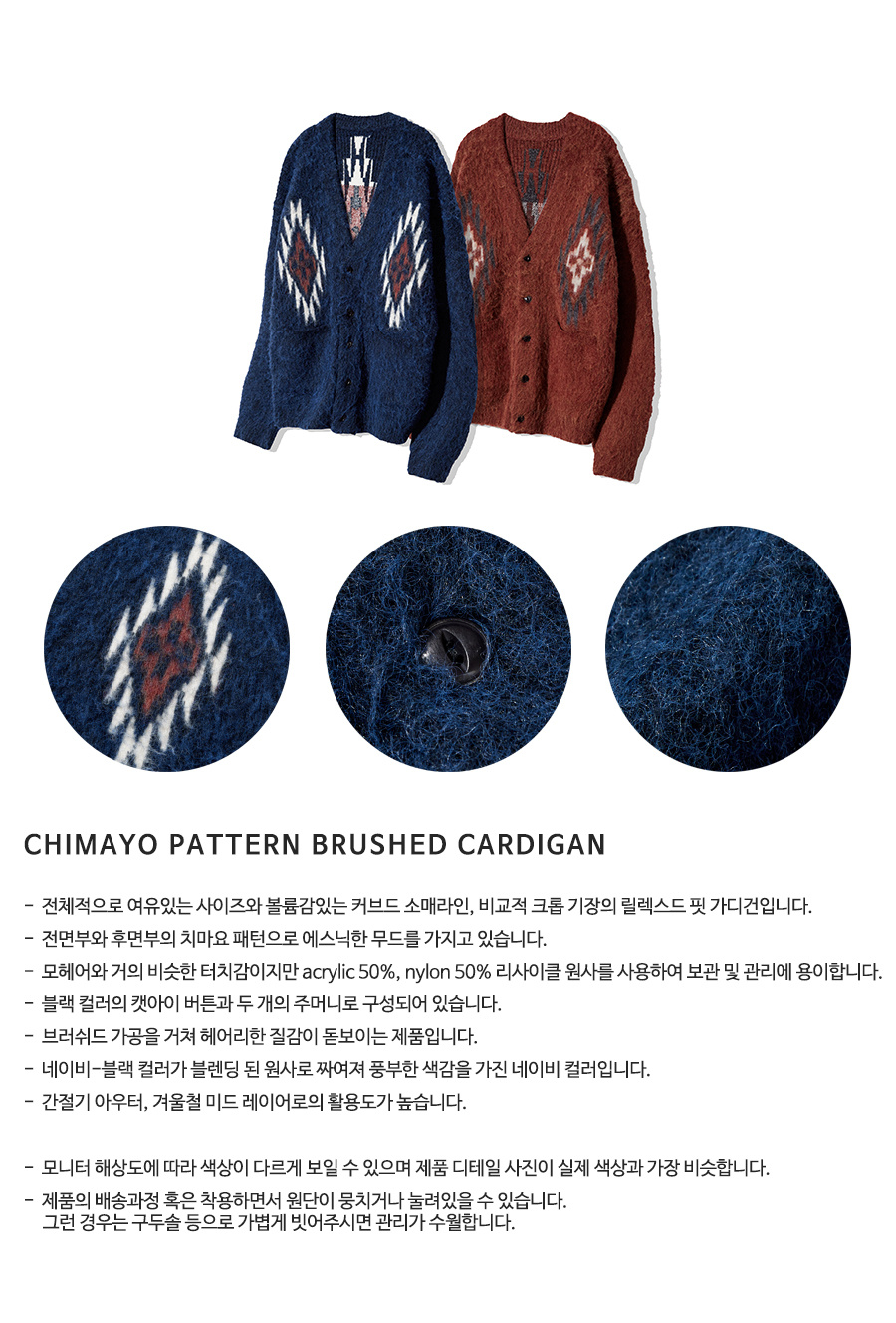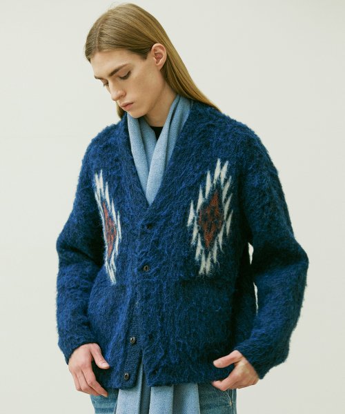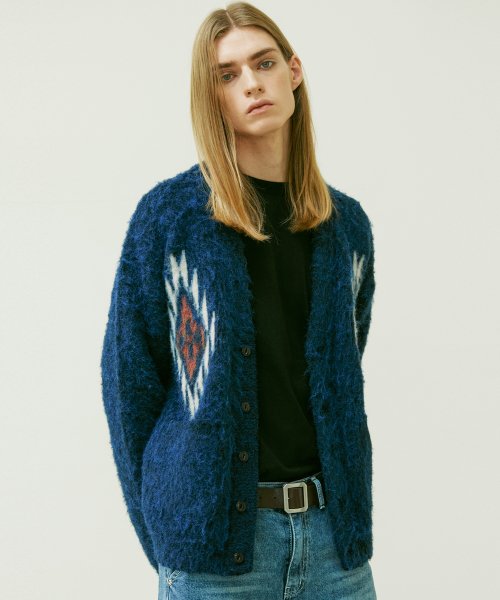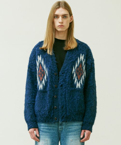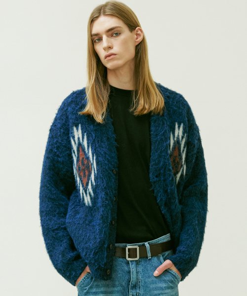 치마요 패턴 벌키 브러쉬 가디건 네이비