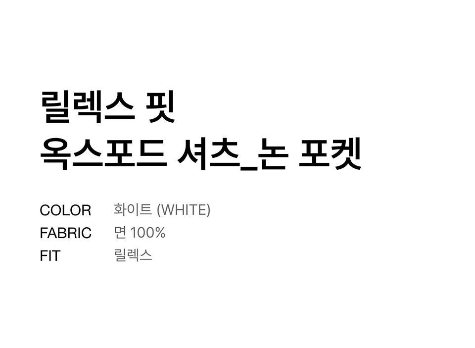릴렉스 핏 옥스포드 셔츠_논 포켓 [화이트]