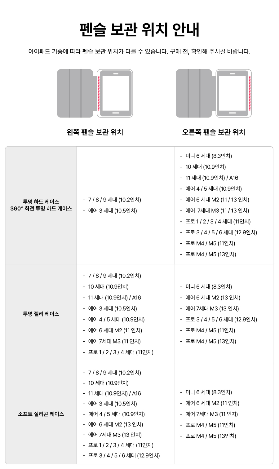 [8COLOR] 아이패드 애플펜슬 수납 스마트커버 투명 케이스