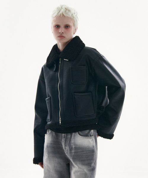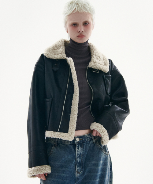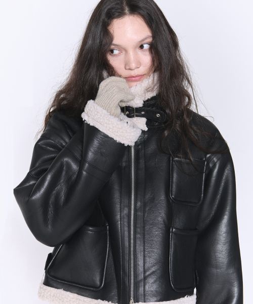 솔리드 무톤 플리스 양털 레더 무스탕 자켓