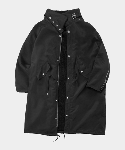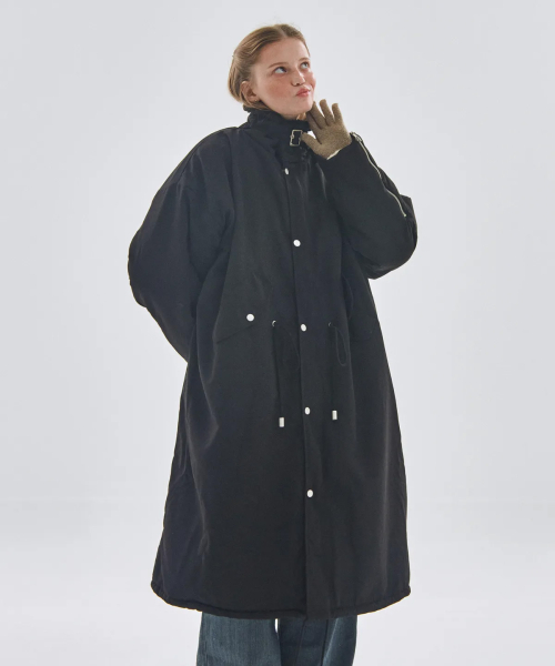 덤블 카라 디테일 오버핏 롱 야상 점퍼 자켓 [블랙]