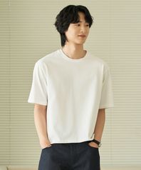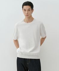 워셔블 수피마 코튼 크루 넥 반소매 니트 [아이보리]