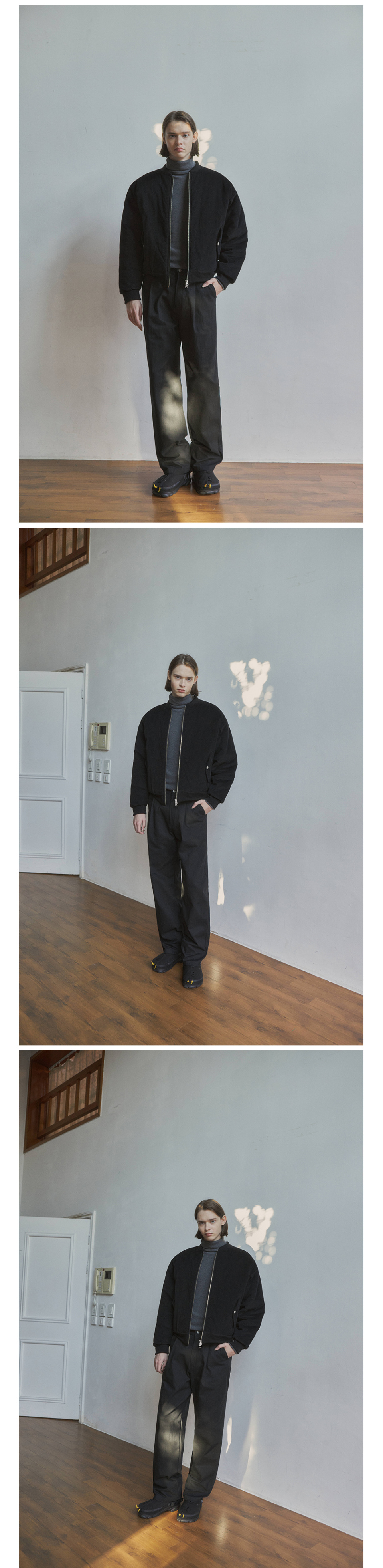 워시드 데님 블루종 - 블랙
