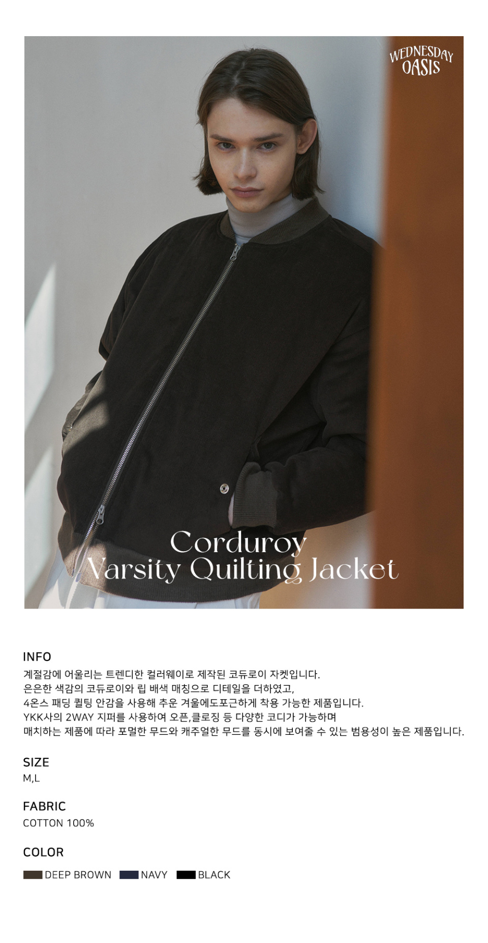 웬즈데이 오아시스(WEDNESDAY OASIS)는 삶 속 휴식 같은 옷을 핵심 가치로 추구합니다. 미니멀 디자인을 기반으로 포근하고 안락한 라이프스타일과 함께할 수 있는 제품을 만들어 나가고자 합니다.