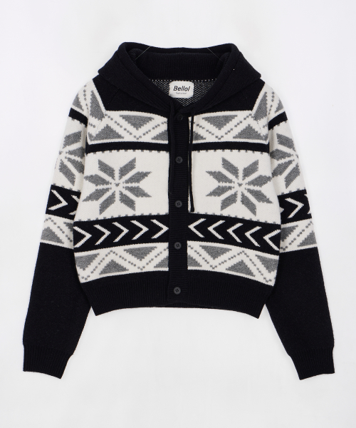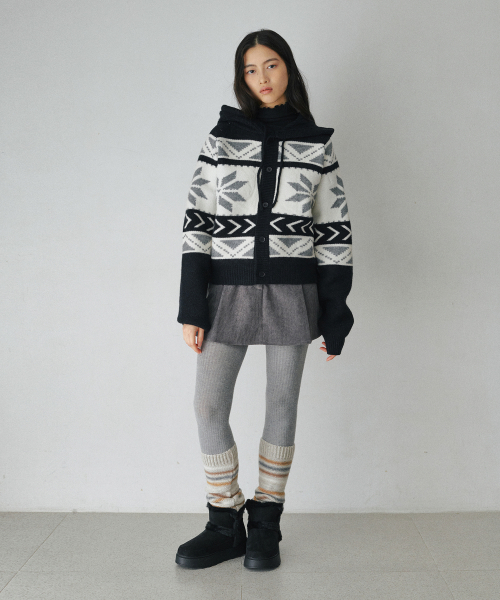 오버사이즈 헤비 노르딕 후드 니트 가디건 블랙