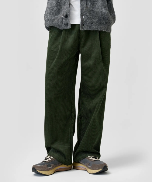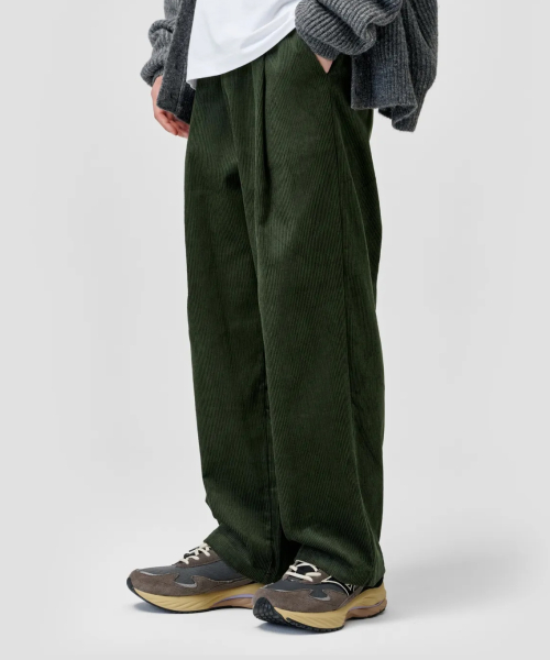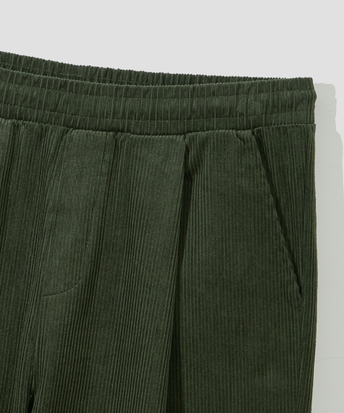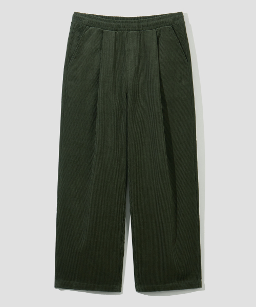 원턱 와이드 코듀로이 밴딩 팬츠 [카키]