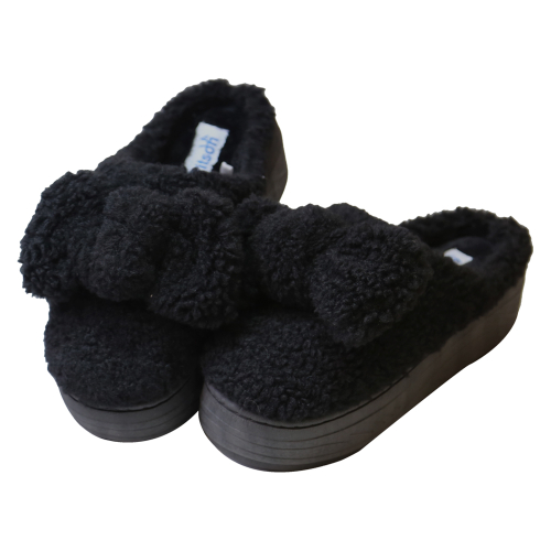 포피 방한 퍼 슬리퍼 블랙