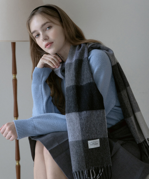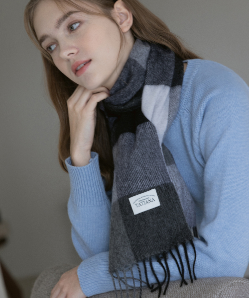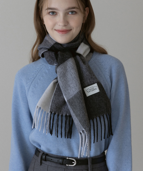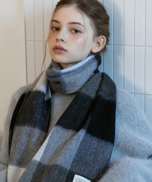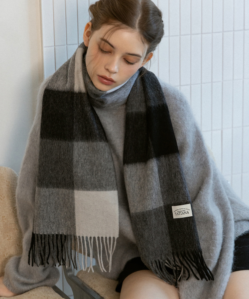 체크 소프트 램스 울 100 머플러 MF8005 블랙