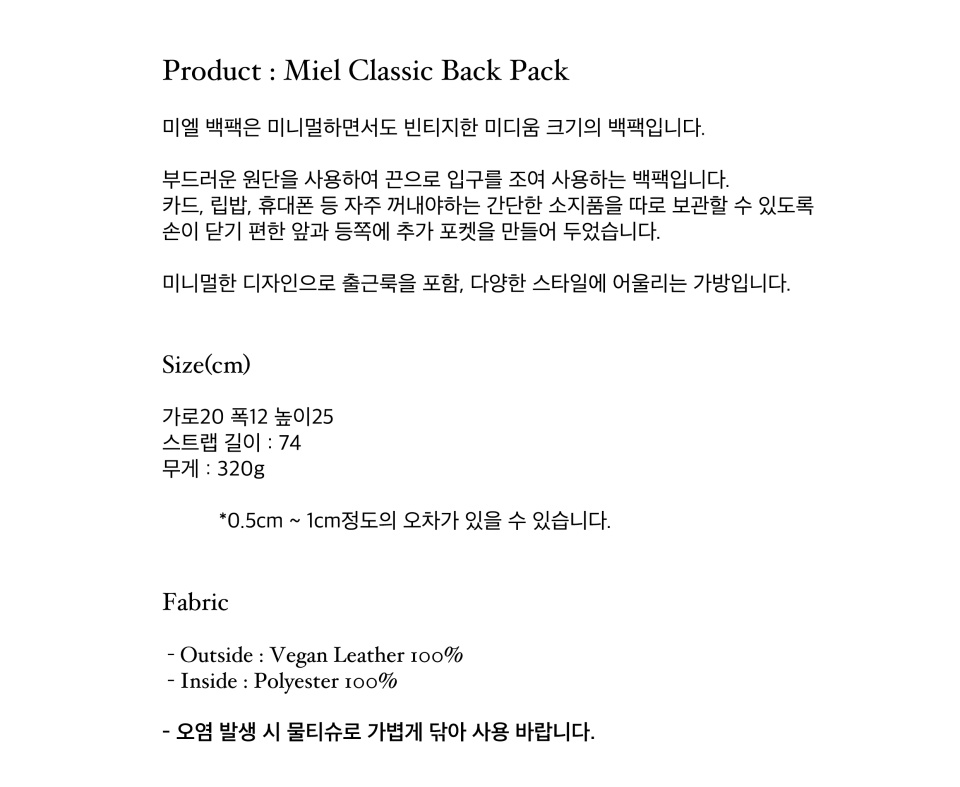 미엘 클래식 백팩 / 블랙