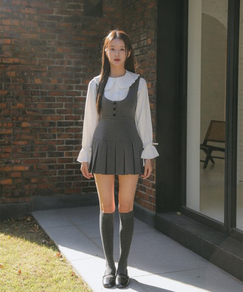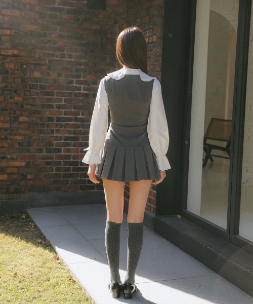 플리츠 스커트 슬림 베스트 원피스 그레이