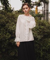 프릴 카라 엠브로이드 셔츠 화이트