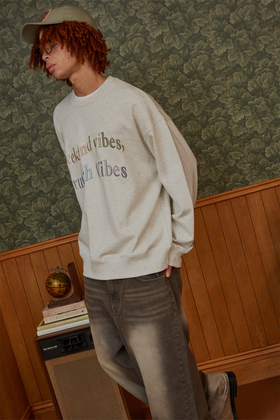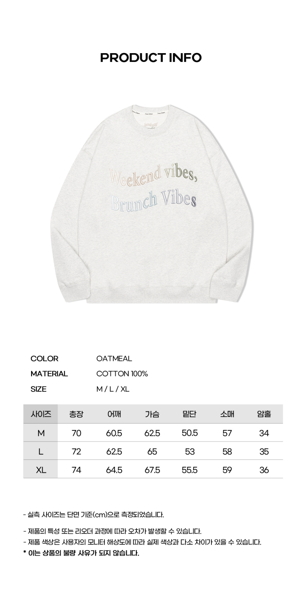 릴렉스 바이브 자수 맨투맨 [오트밀]