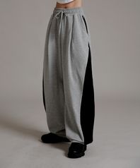 트레이닝 핀턱 배색 와이드 팬츠 멜란지