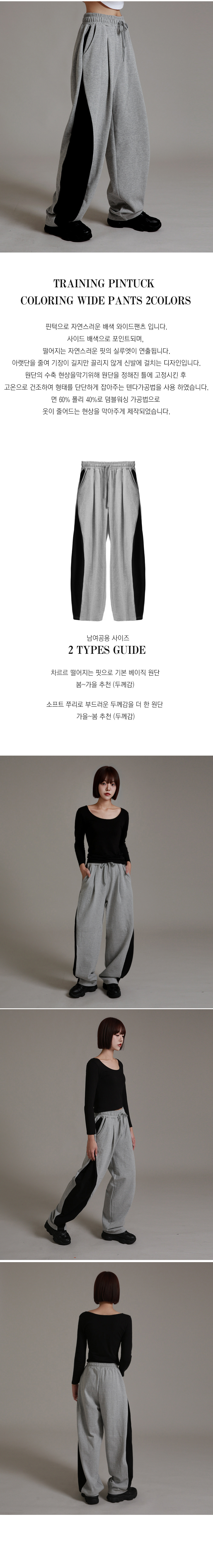 트레이닝 핀턱 배색 와이드 팬츠 멜란지