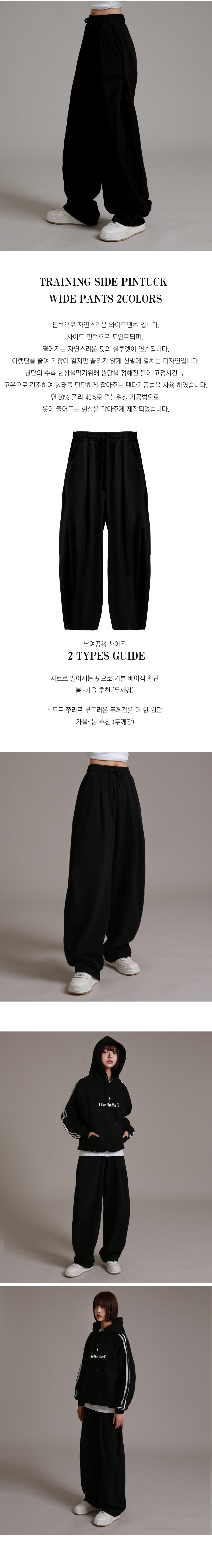 트레이닝 핀턱 사이드핀턱 와이드 팬츠 블랙