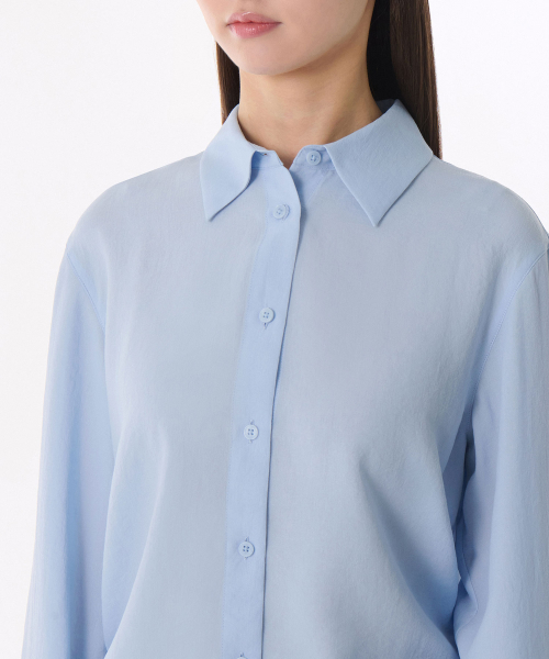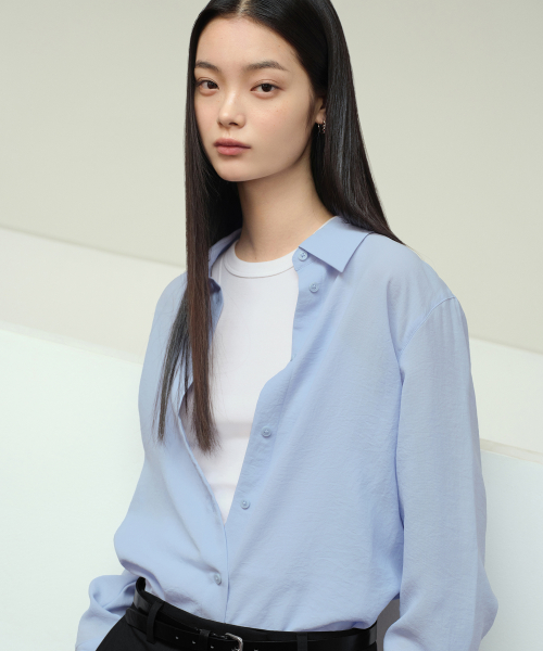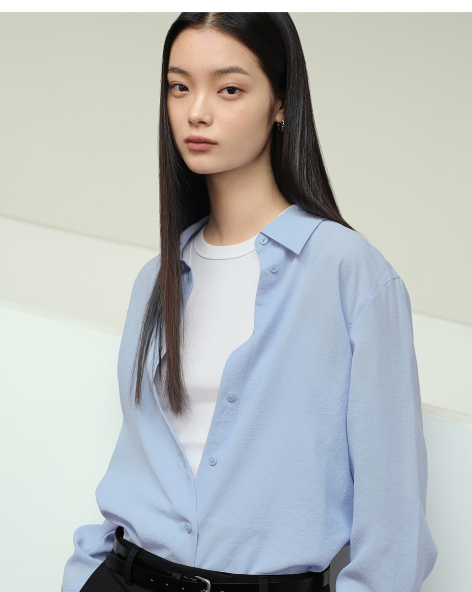 우먼즈 릴렉스드 린넨 라이크 셔츠 [스카이 블루]