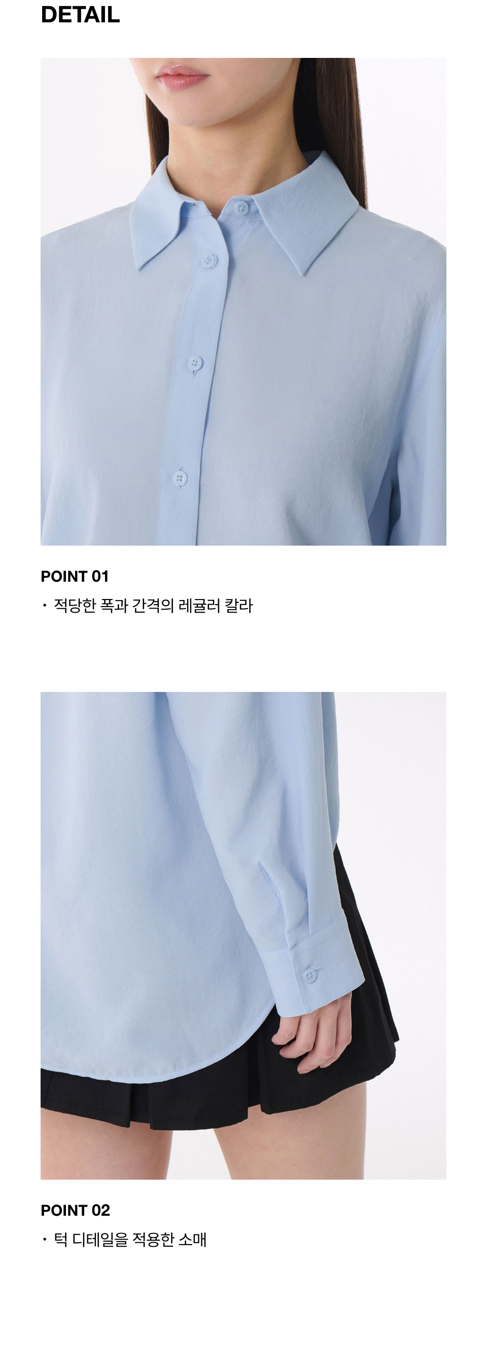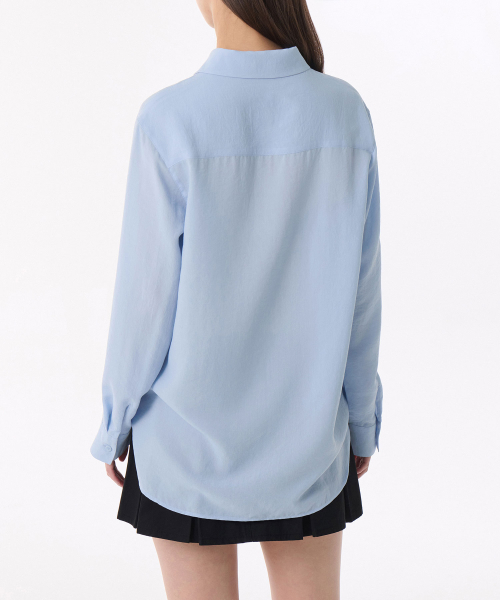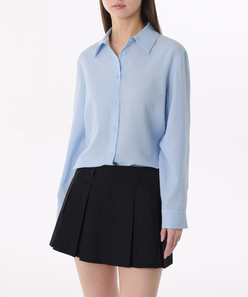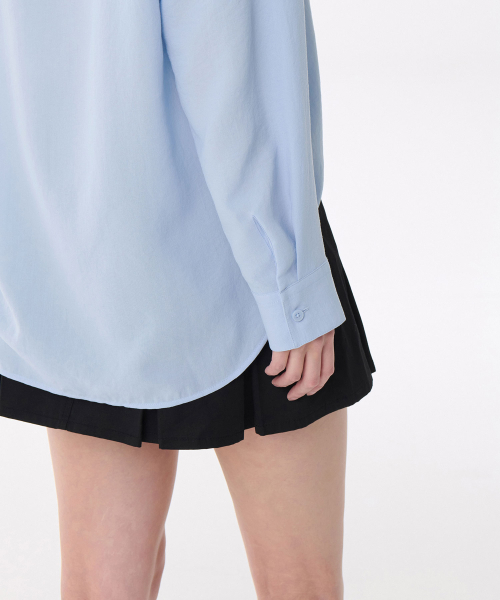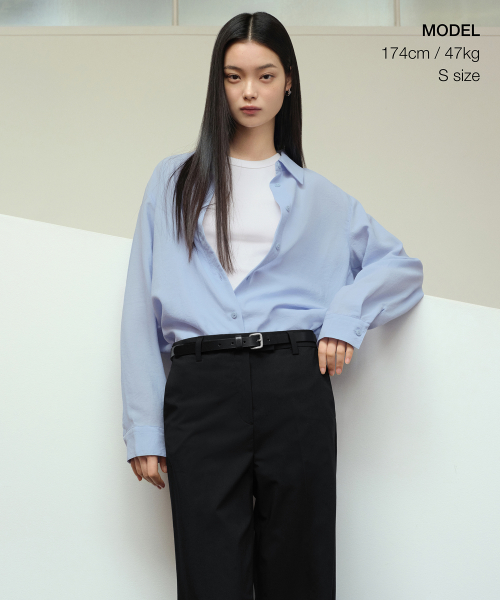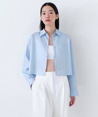 우먼즈 코튼 나일론 오버사이즈 크롭 셔츠 [라이트 블루]