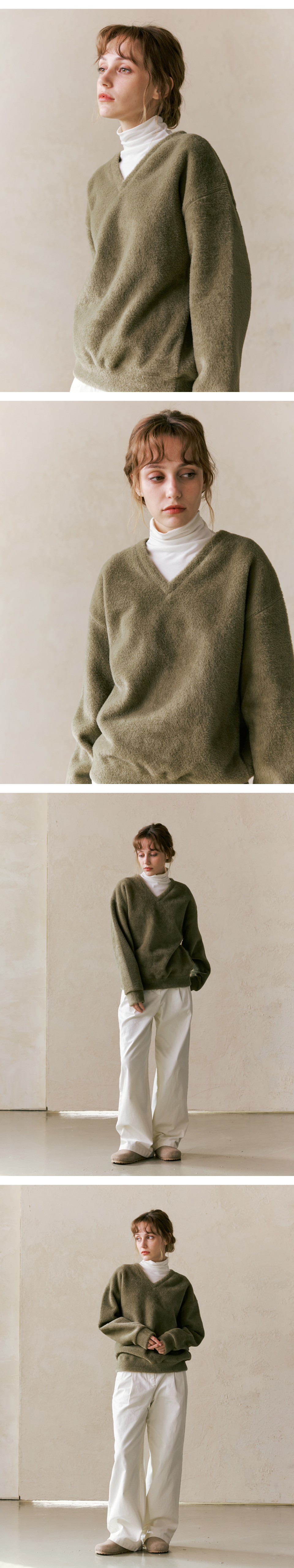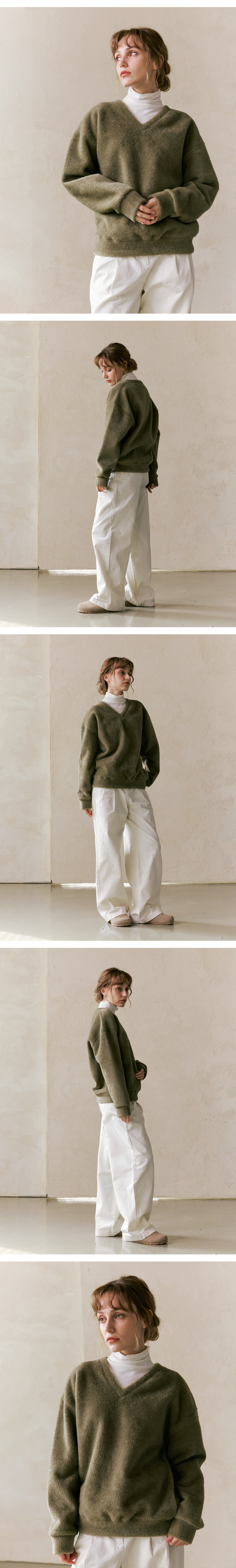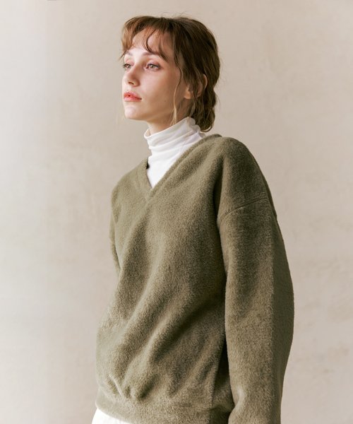 워셔블 헤어리 브이넥 스웨트셔츠_Mint Grey