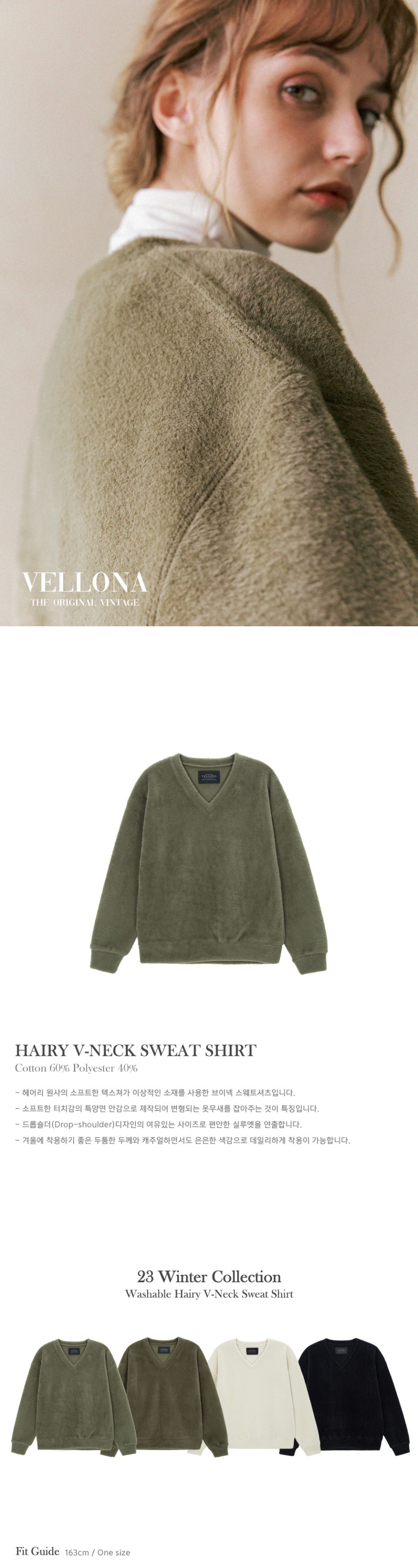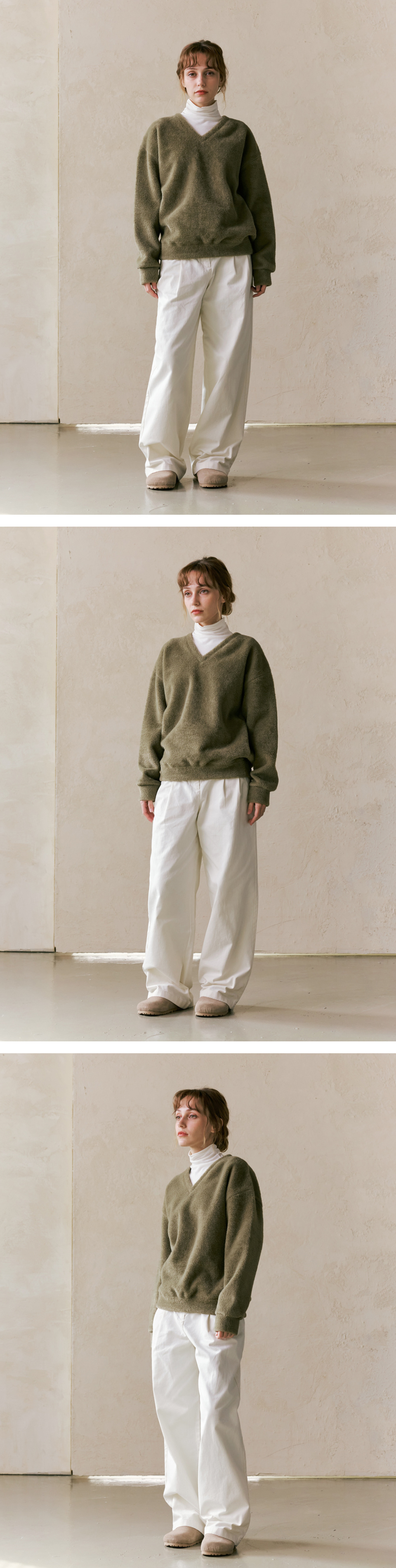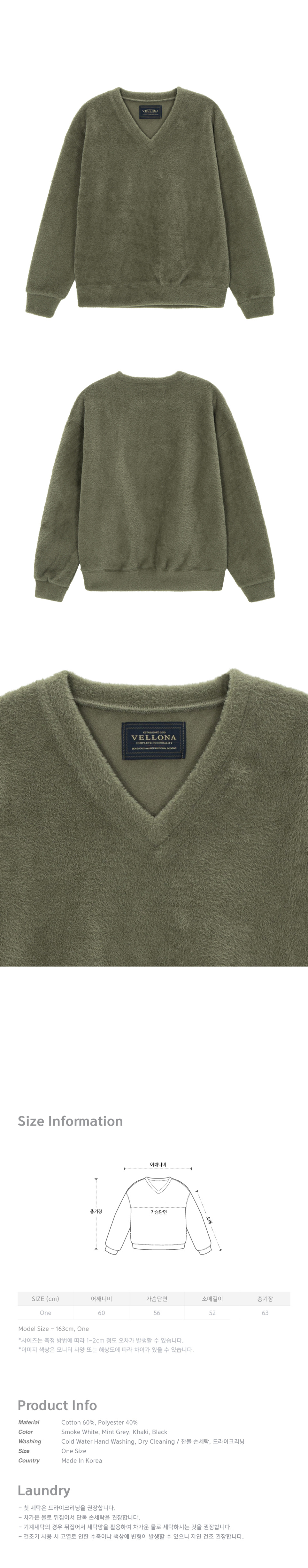워셔블 헤어리 브이넥 스웨트셔츠_Mint Grey