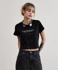 레트로 타이포그래픽 크롭 티셔츠_블랙
