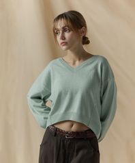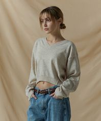 워셔블 헤어리 브이넥 스웨트셔츠_Mint Grey