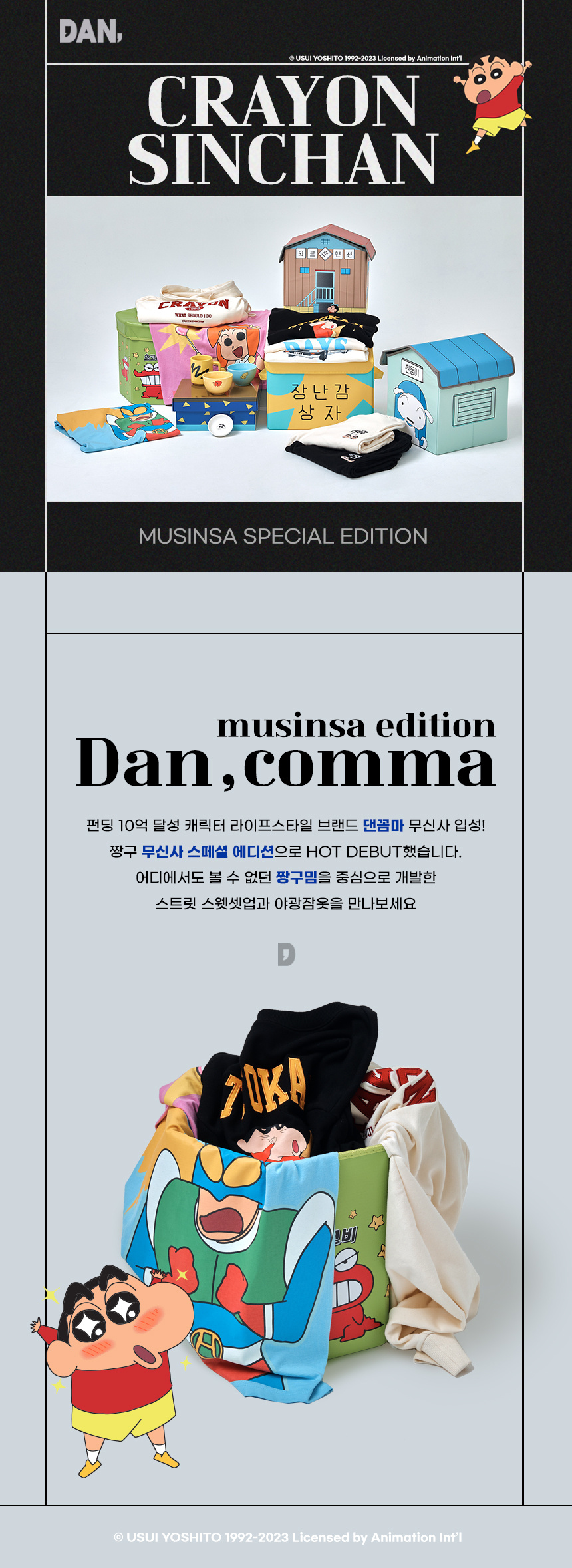 댄꼼마(DANCOMMA)는 브랜드 페르소나 캐릭터인 어른이 '댄(DAN)'의 쉼표라는 뜻으로, 어른이들을 위한 쉼표 같은 브랜드를 지향하고 있습니다. 어른이들이 좋아할 애니메이션, 캐릭터를 중심으로 다양한 라이프스타일 아이템을 전개합니다.