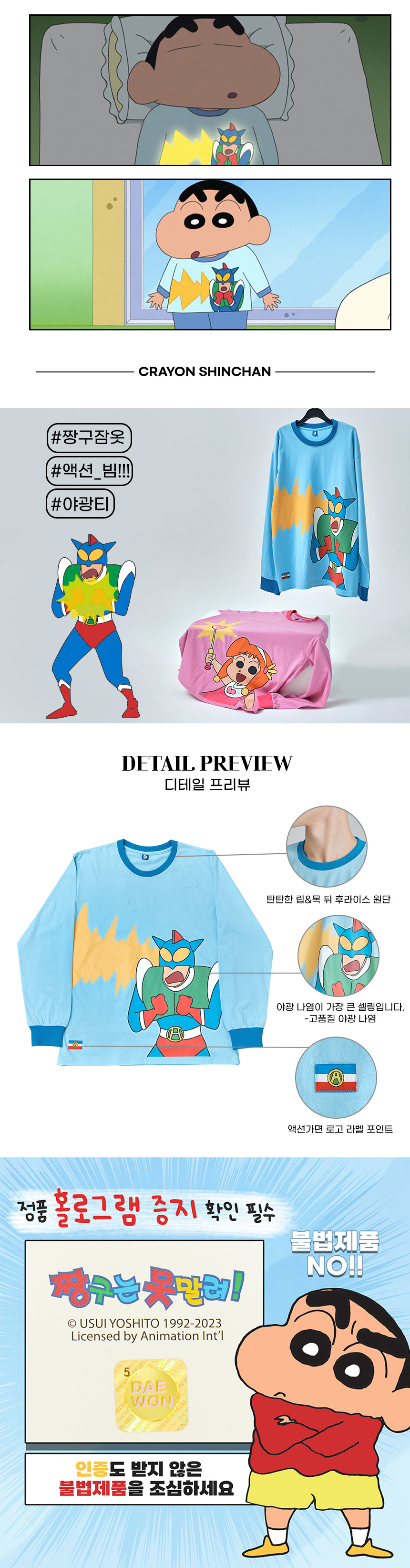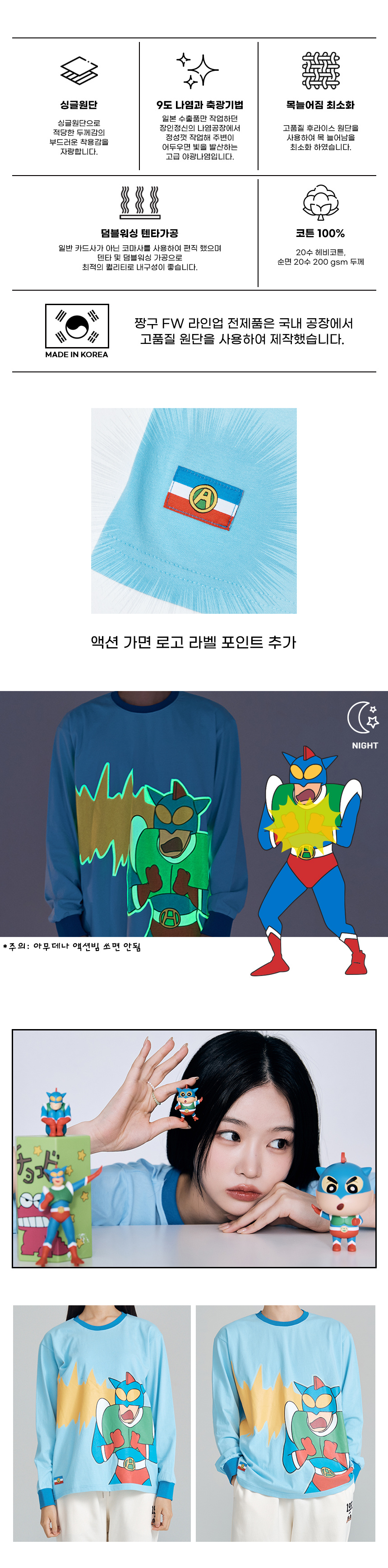 짱구 액션빔!! 긴팔 야광 티셔츠