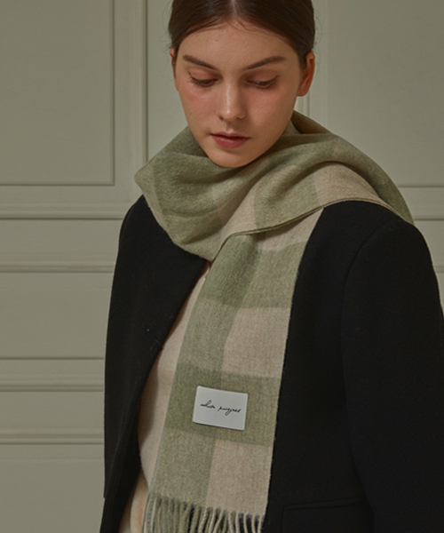 [기프트박스]_패턴 버진울 머플러_라이트 그린