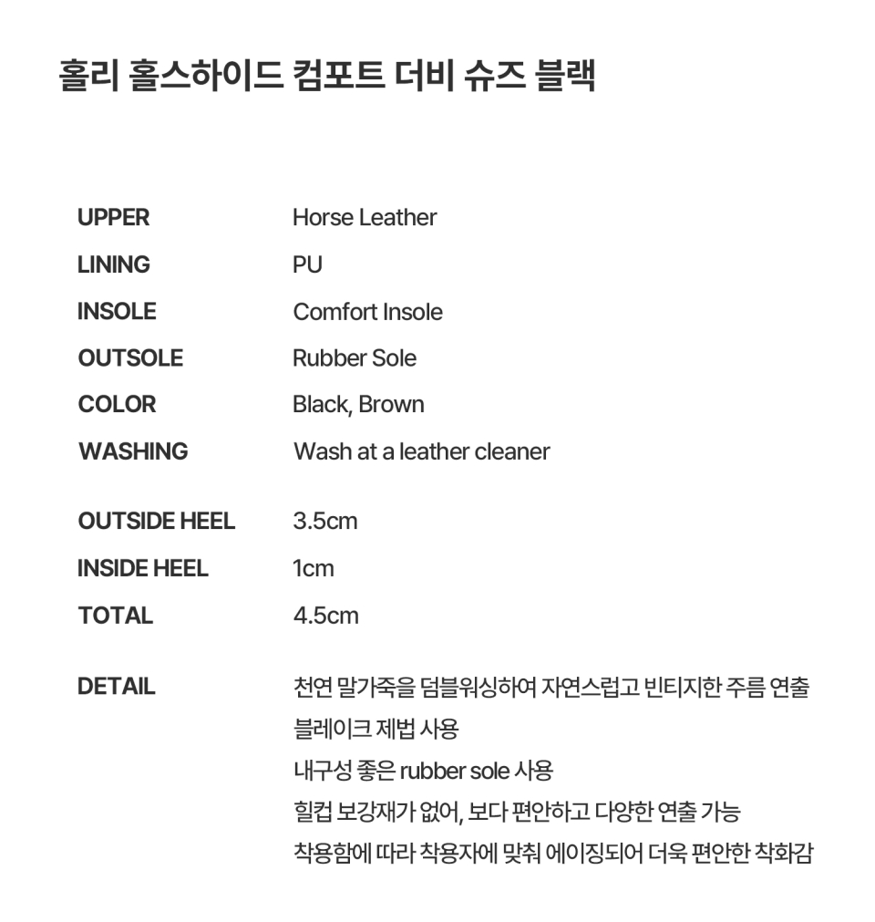 - 사이즈 확인시 동봉된 슈혼 사용을 권장드립니다. 사이즈 확인 과정 제품 하자( 가죽의 손상, 과도한 시착으로 인한 주름) 발생 시 교환 및 환불이 불가합니다.